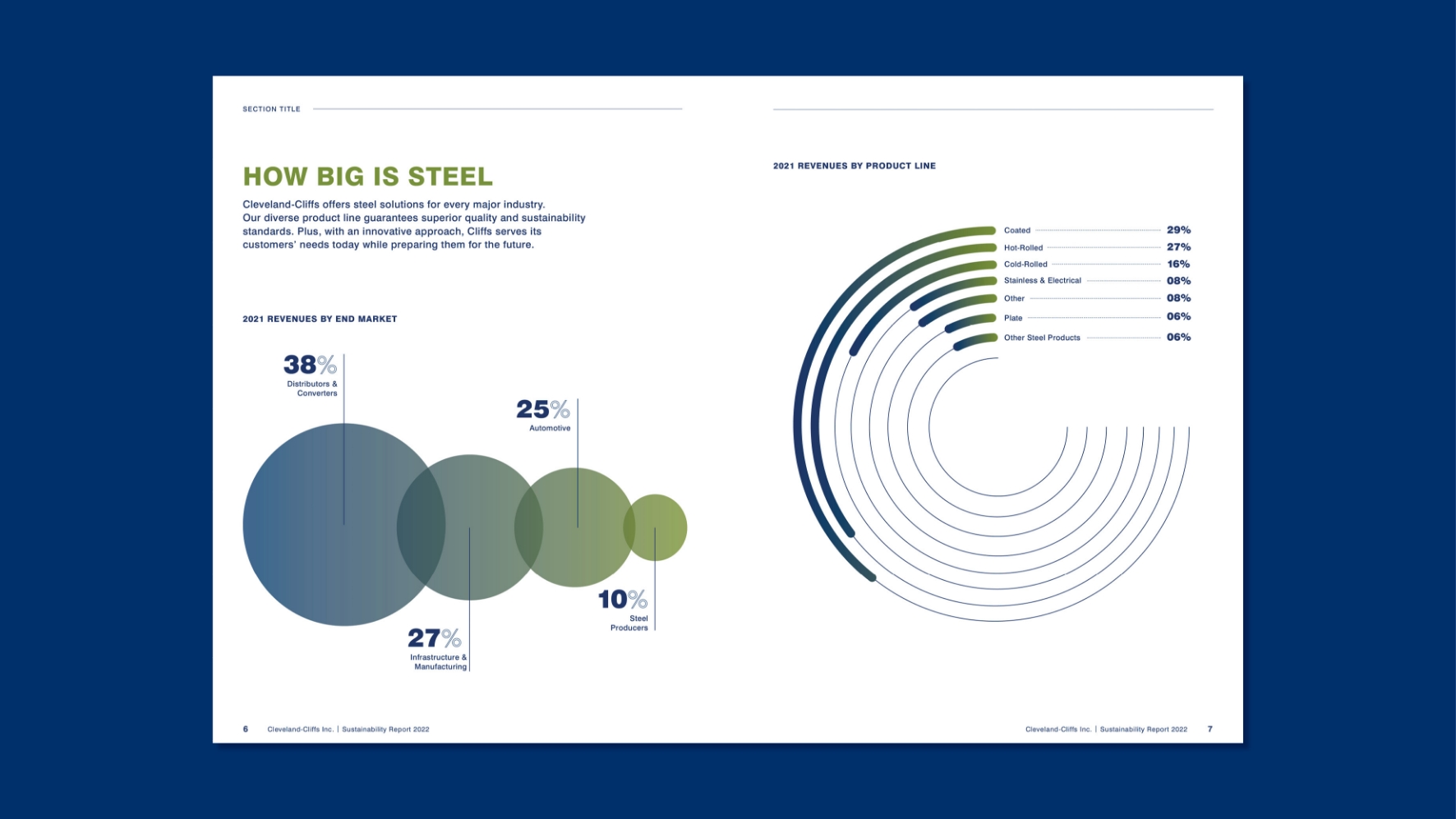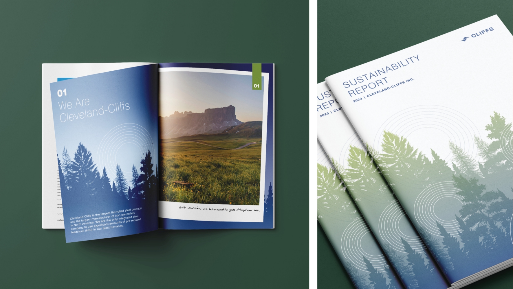 Cleveland-Cliffs produces and delivers the steel that shapes industrial infrastructure, communities, and the built environment. As the company expanded its sustainability commitments, it needed a comprehensive report capable of presenting rigorous environmental, social, and governance (ESG) data in a way that was visually unified, highly readable, and aligned with the strength and integrity of the Cliffs brand.